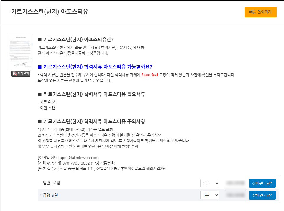 세 번째, 필요한 서류 장바구니에 담기