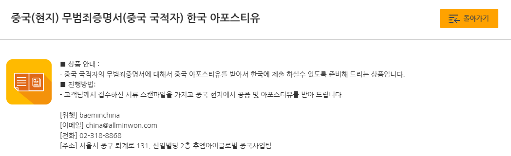또, 중국 무범죄증명서는 "중문"으로만 발행되기 때문에
