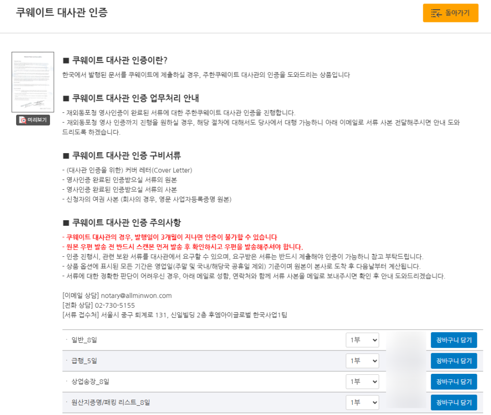 그리고 영사확인 및 주한 쿠웨이트 대사관 인증까지 모든 과정을 신속하고 정확하게 대행해 드리므로