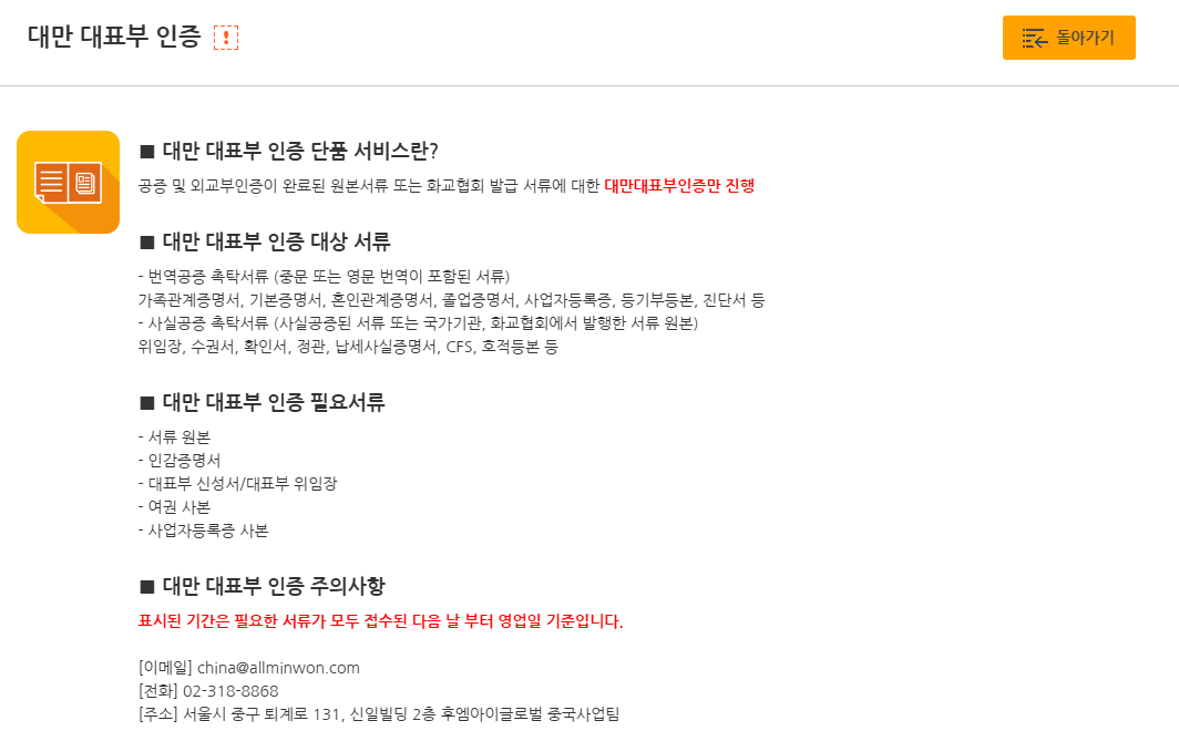 오늘은 대만 대표부인증에 대해 알아볼게요