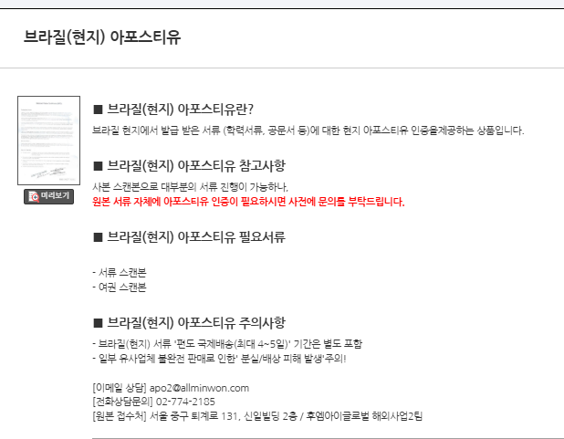그리고 브라질 아포스티유의 경우 브라질에서 받아야 하므로