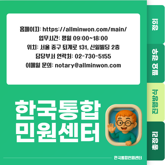 한국통합민원센터는 직접 공증을 수행하는 기관이 아닌 공증 촉탁 대행 전문 업체입니다.
